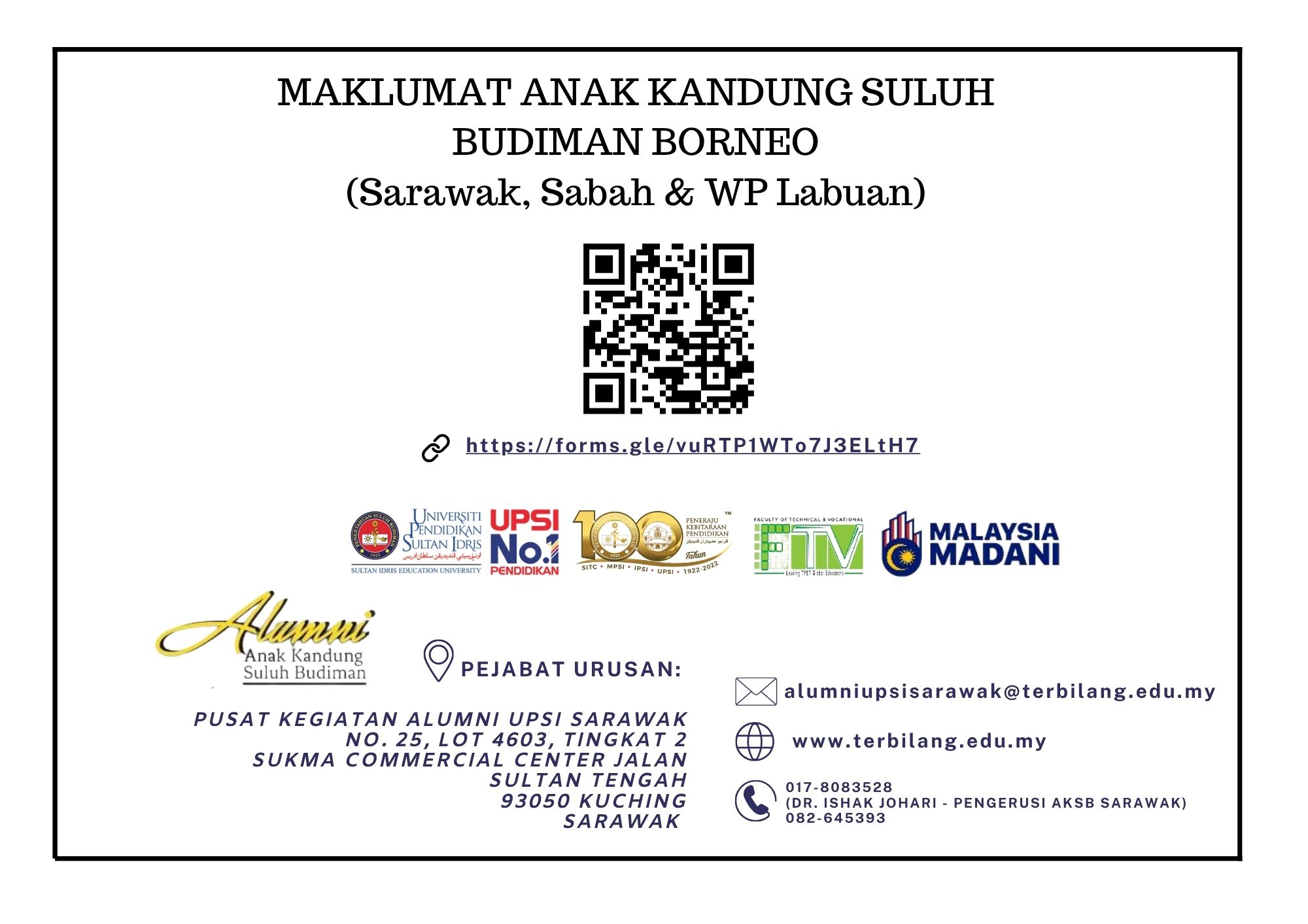 Dimintasemua AKSB mengisi maklumat terkini Persatuan Anak Kandung Suluh Budiman bagi hebahan aktiviti yang bakaa dilaksanakan di Sabah, Sarawak & Wilayah Persekituan Labuan.