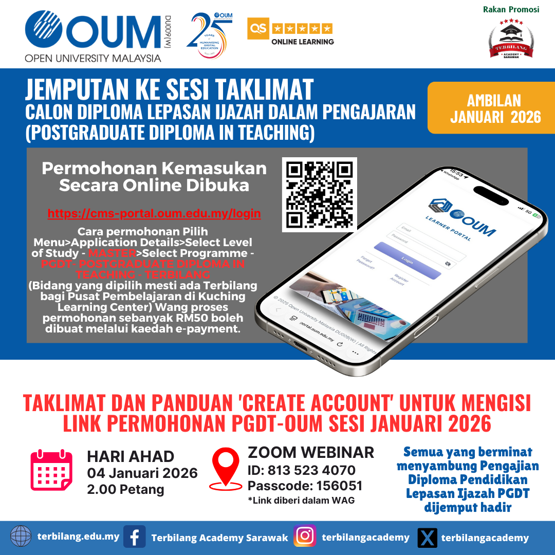 Pendaftaran: Rekod kehadiran Taklimat Calon DPLI – PGDT OUM- Terbilang